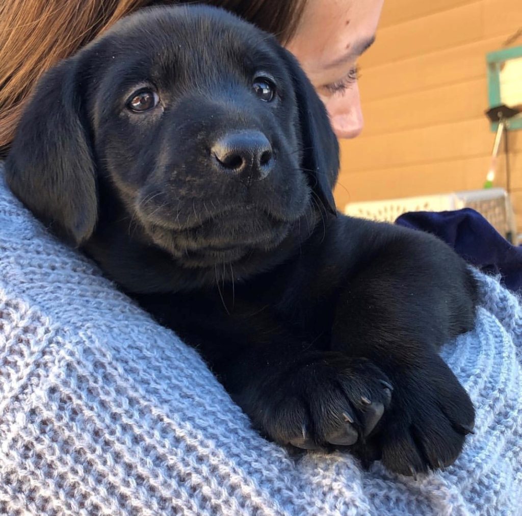 可爱的AKC纯种黑色拉布拉多小狗与第一次兽医访问