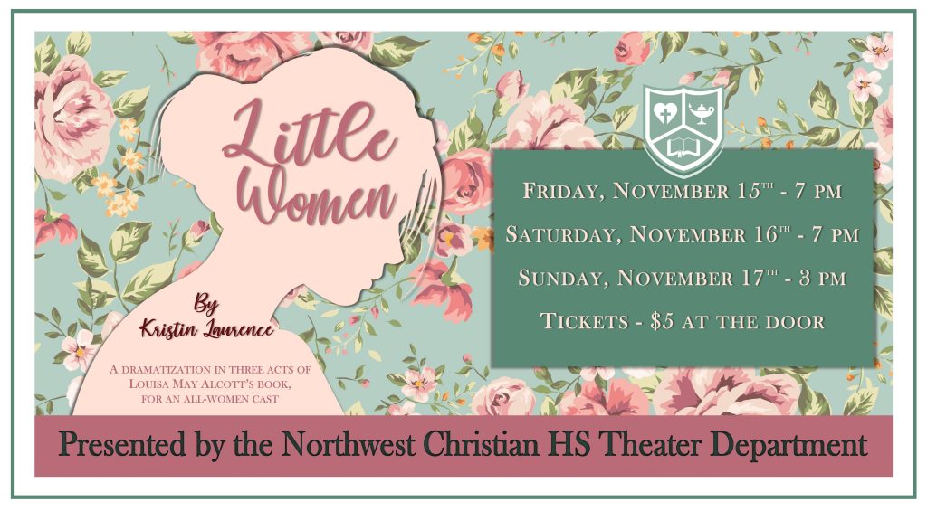Please come out and support NWCS’s Theater Department and fall class! 当姐妹俩试图在客厅排练戏剧时,你会笑,当她们与姐姐贝丝的疾病作斗争时,你会哭,当姐妹们最终在圣诞节与父母团聚时,你会带着一颗充满希望和快乐的心离开!